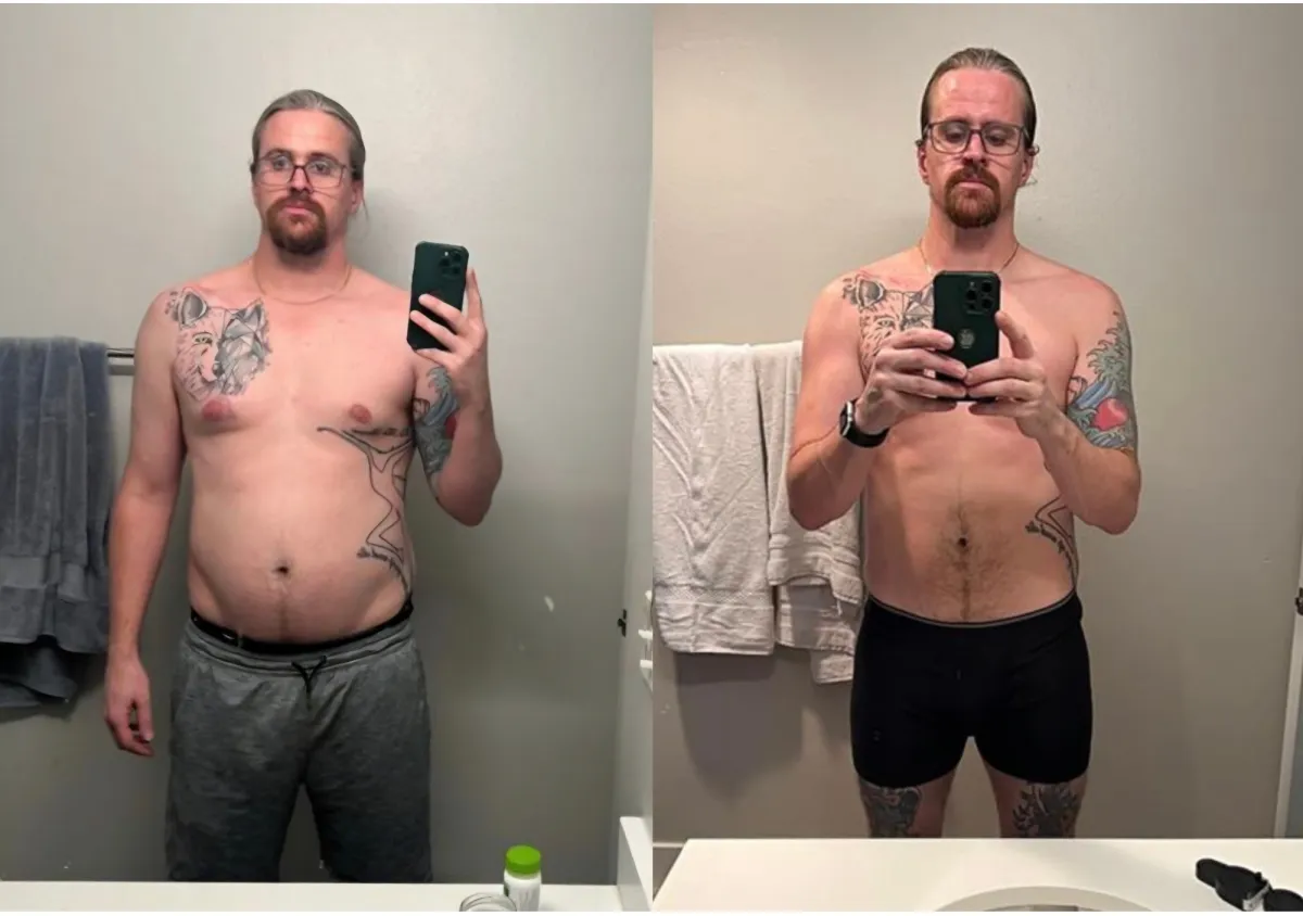 • A 33-year-old self-employed barber and tattoo artist who dropped 28 pounds and over five inches off his waist in 16 weeks while working long days on his feet — maintaining steady energy from morning appointments through late-night sessions.